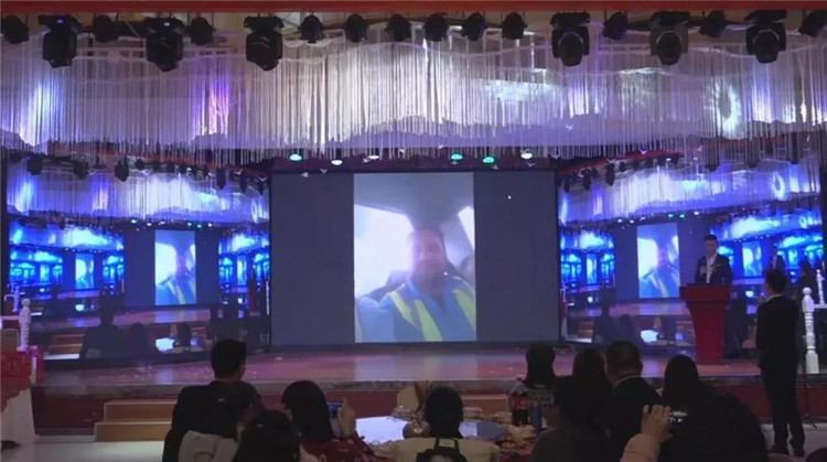 并与因远在异国他乡(迪拜)而不能参加公司年会的技术员以及海外合作伙伴进行现场视频连线。