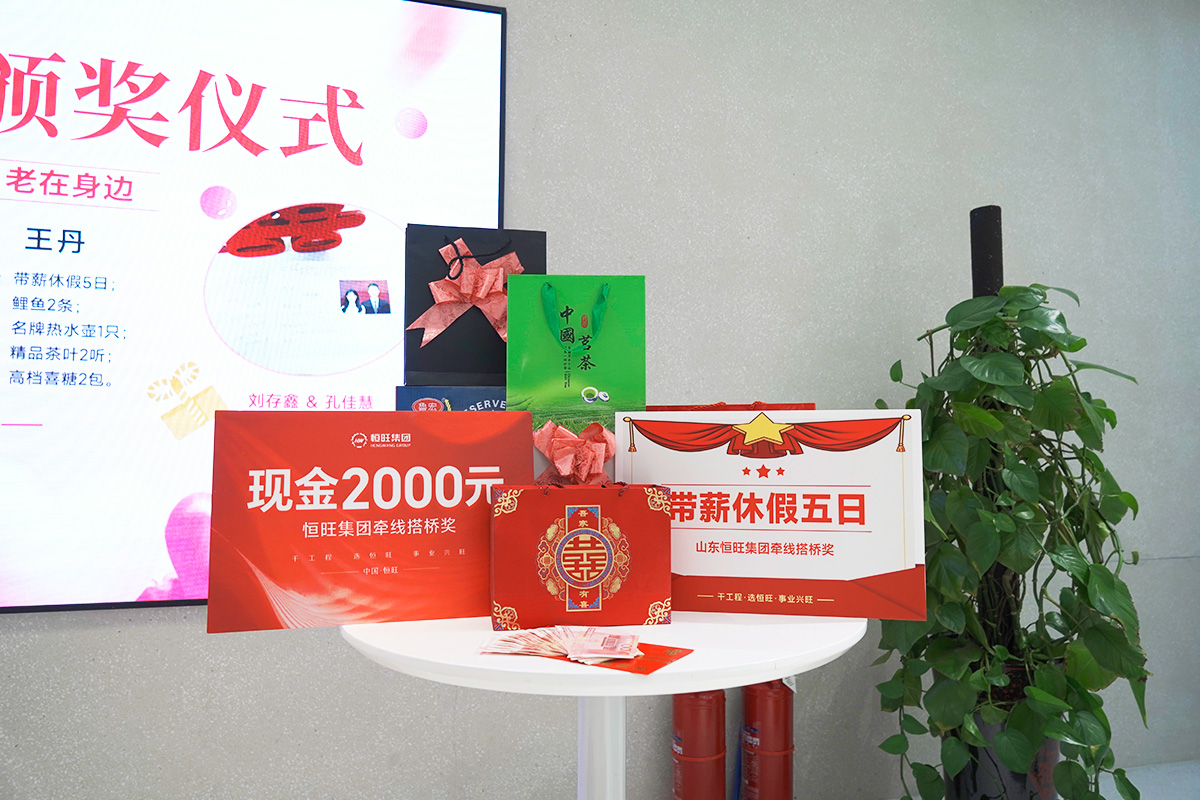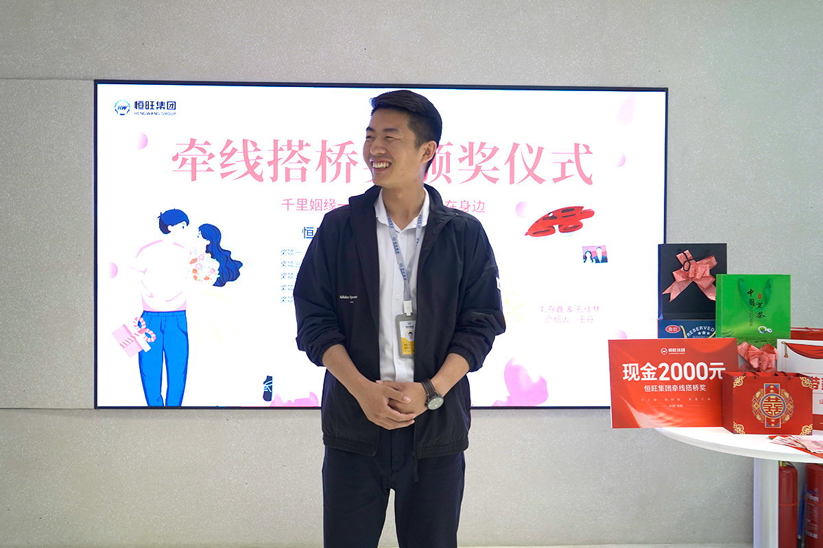 近日,恒旺集团国内贸易部员工刘存鑫在“红娘”王丹的介绍下,迈入婚姻的殿堂,作为介绍人在收获感谢的同时,也得到了公司提供的一份“红娘”奖励。