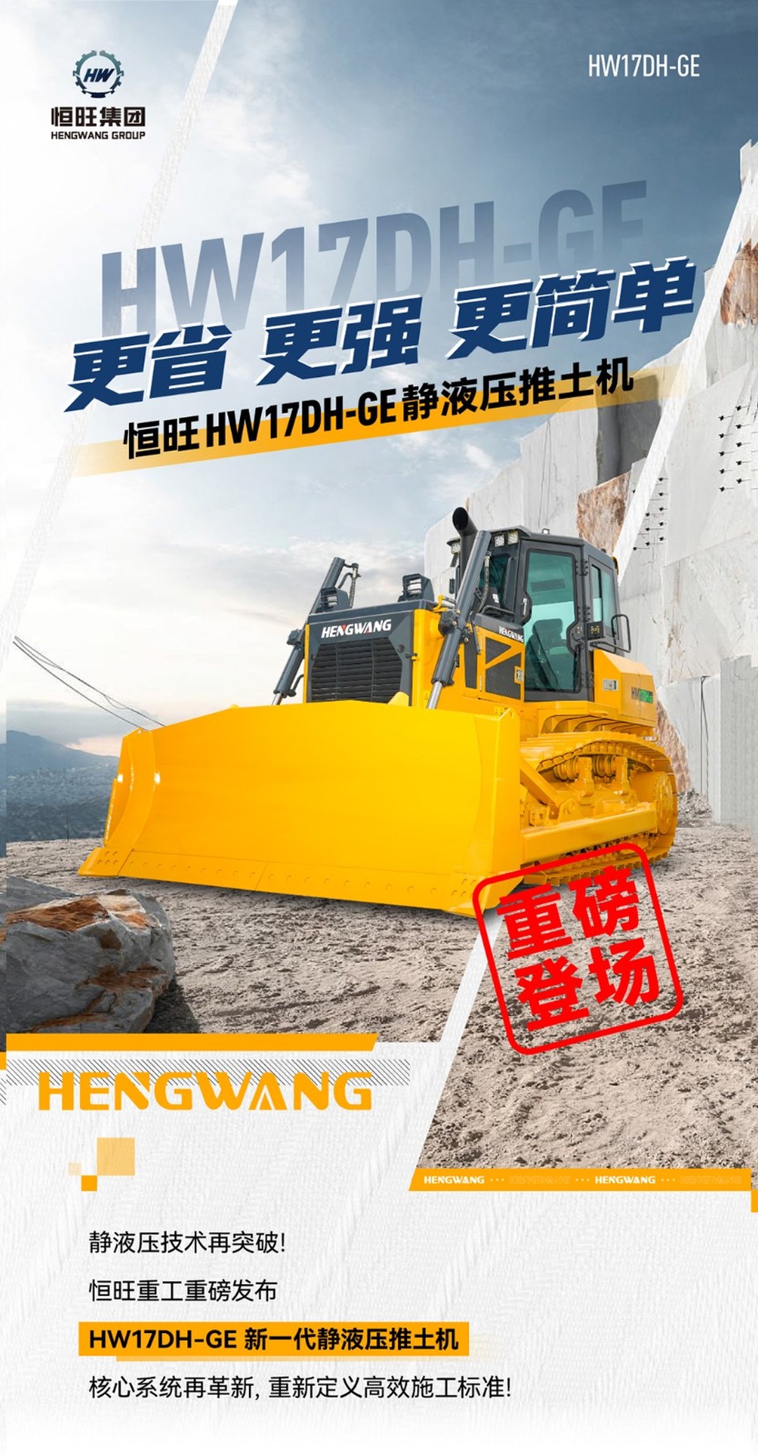 更省!更强!更简单!恒旺 HW17DH-GE 静液压推土机重磅登场!