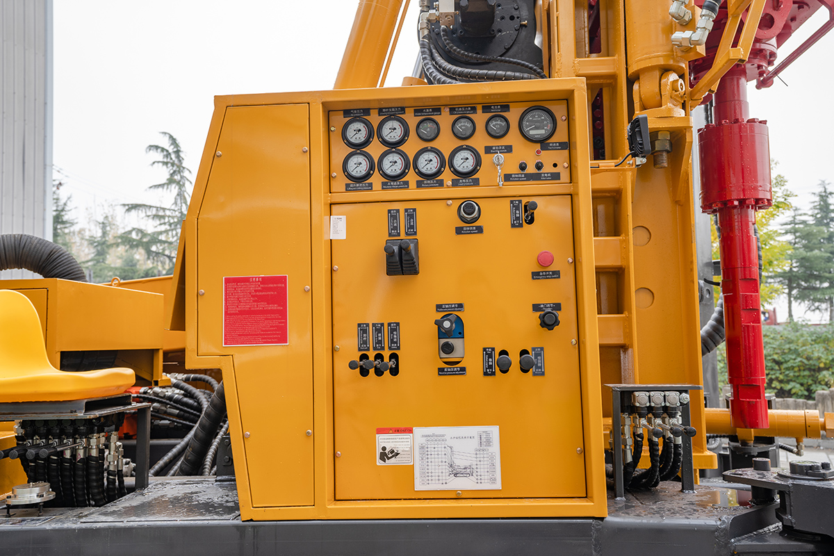 该钻机可在不同地层上进行穿凿工作,采用新型液压技术,配套大扭矩液压马达回转以及大缸径液压油缸推进,名厂多缸发动机为液压系统提供动力,两级空滤以及空压机进气设计,延长柴油机的使用寿命。独特的泵组设计方便维修,降低维修成本。集中控制的液压操纵台,方便操作。