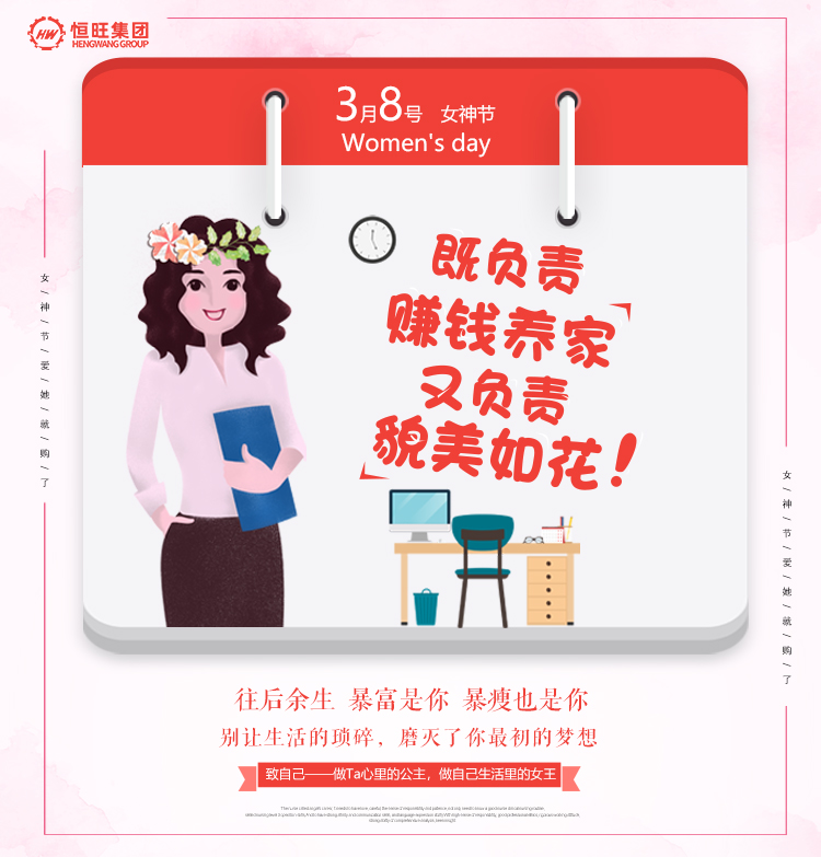 阳春三月,草长莺飞,在这生机盎然的季节里,我们迎来了2021年的三八妇女节,在这个特殊的日子里,恒旺集团携全体员工,祝广大的女性同胞们节日快乐!
