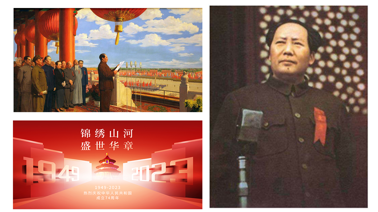 1949年10月1日,中华人民共和国中央人民政府成立典礼,即开国大典,在北京天安门广场隆重举行。中国人民从此翻身解放,当家作主,屹立在世界东方。