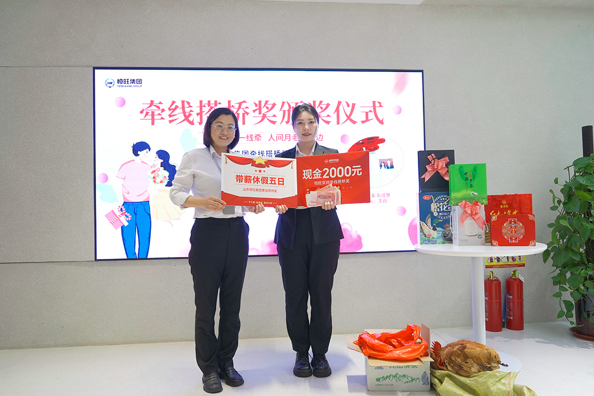近日,恒旺集团国内贸易部员工刘存鑫在“红娘”王丹的介绍下,迈入婚姻的殿堂,作为介绍人在收获感谢的同时,也得到了公司提供的一份“红娘”奖励。