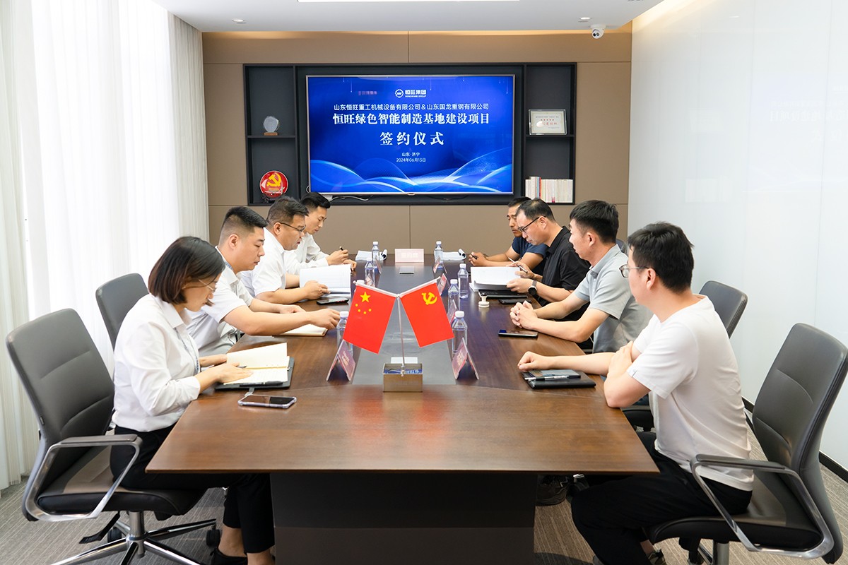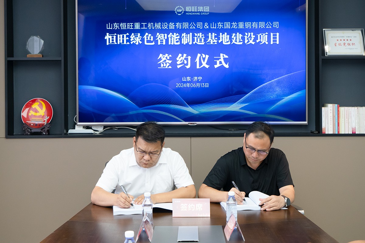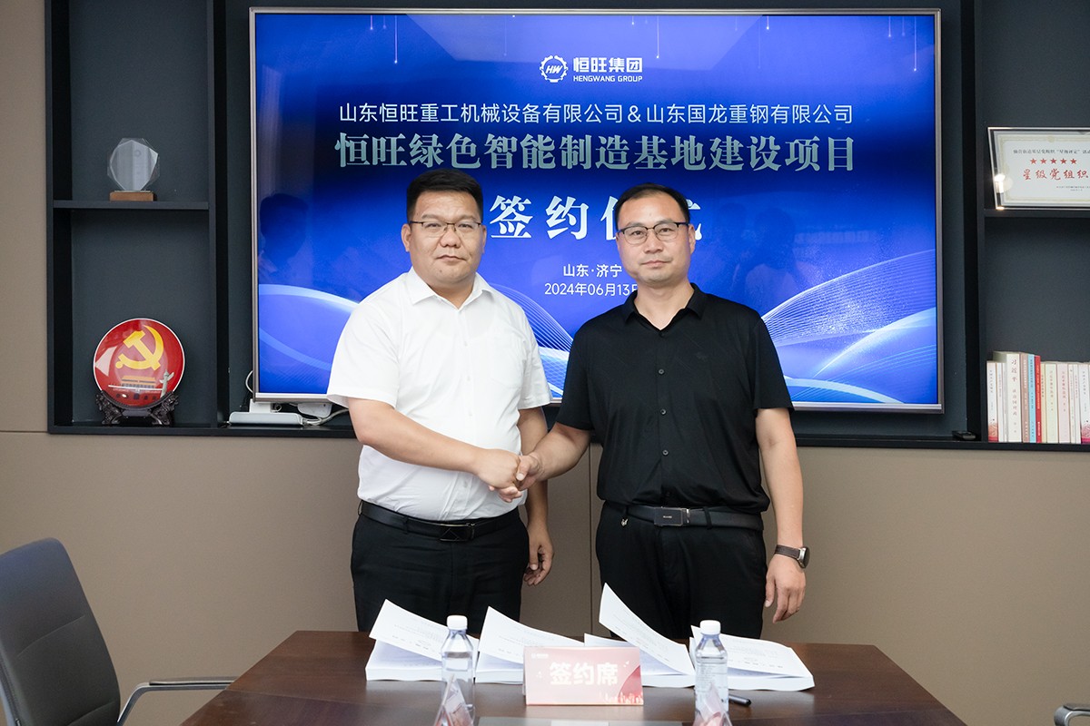 6月13日,恒旺集团与山东国龙重钢有限公司就恒旺绿色智能制造基地建设项目签署合作协议。恒旺集团总经理刘小伟与山东国龙重钢有限公司总经理胡荣地出席并代表双方签署合作协议。