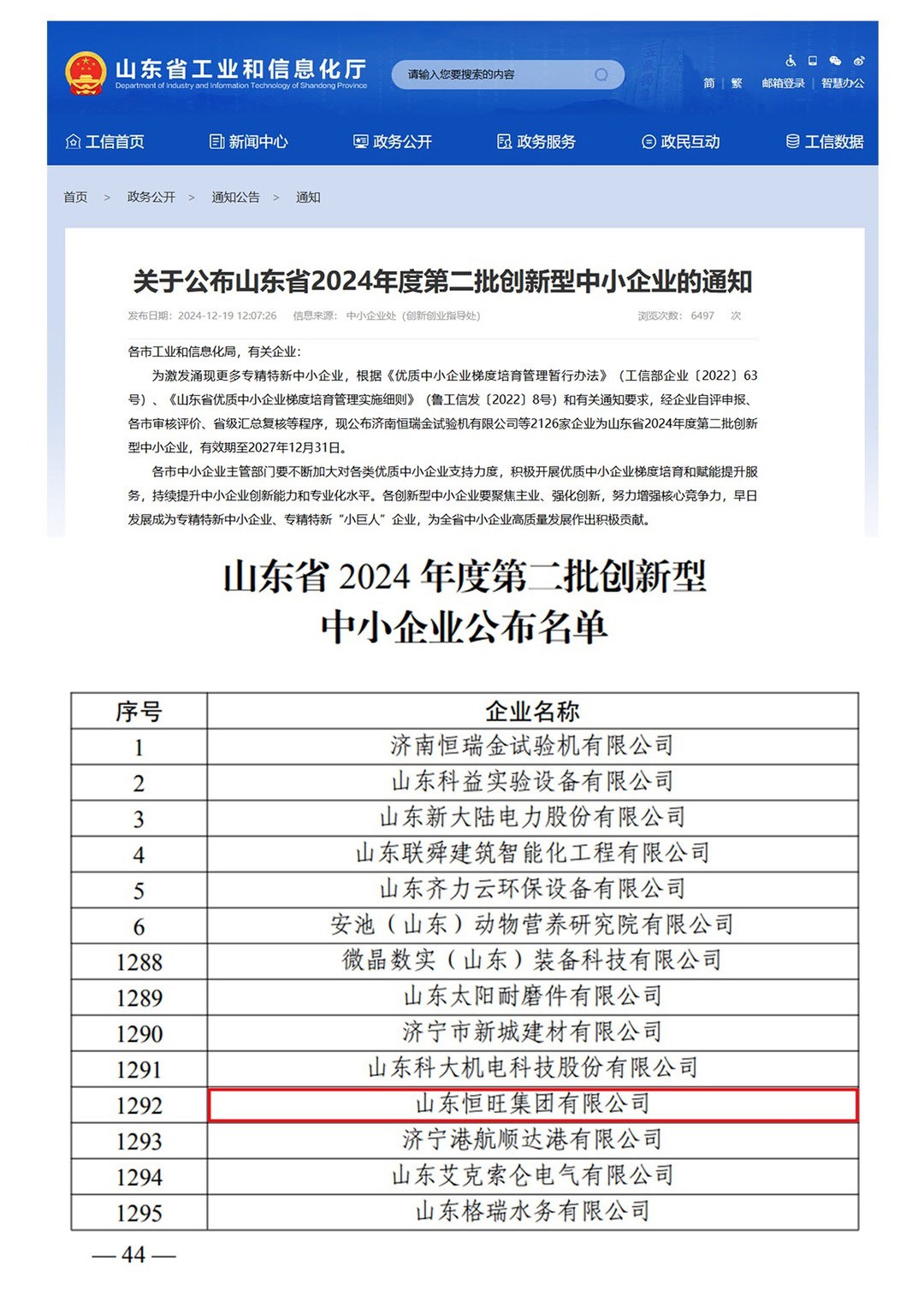 近日,山东省工业和信息化厅公布了2024年度创新型中小企业评选结果,山东恒旺集团凭借卓越的创新能力和稳健的发展成果,从众多优秀企业中脱颖而出,荣获“山东省2024年度创新型中小企业”称号。
